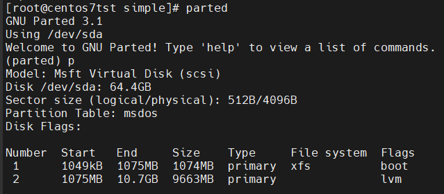 Видно, что размер диска якобы 64 GB, а оба раздела в сумме явно дают больше 10-и GB. Происходит это из-за разночтений правил подсчёта данных/информации (1 килобайт = 1000/1024 байт).