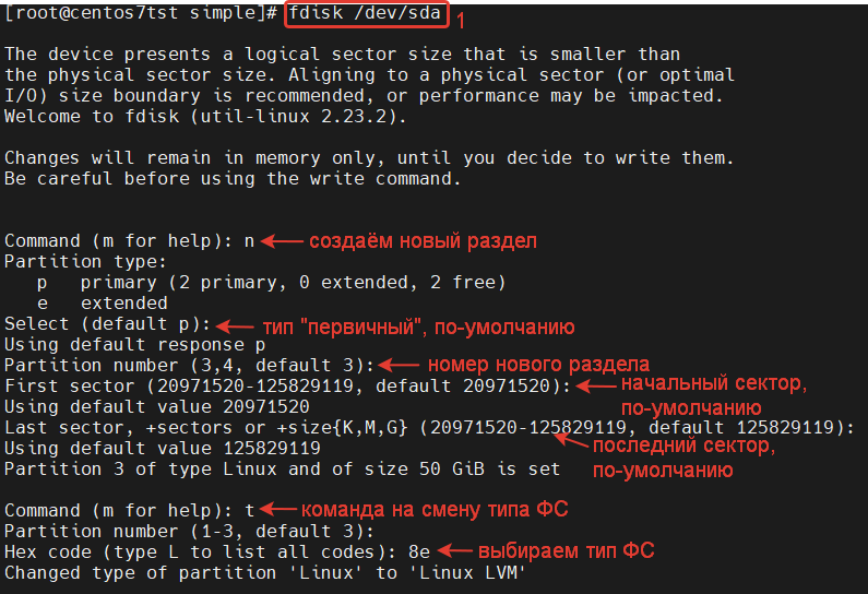 # fdisk /dev/sda