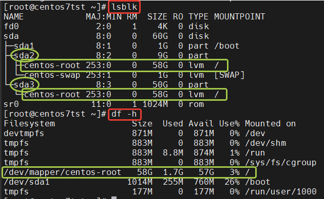 # xfs_growfs /dev/mapper/centos-root